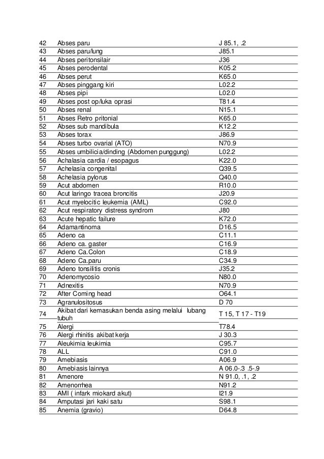 Inkomplete o 03 r.ginting abaortus o 03 r.ginting abdominal pain r 10 simon abses (luka) l02 karel abses collon k63.0 karel abses gigi k04.7 suparto abses gusi k05.2 karel abses hepar k75.0 naupal abses mandibula l 02 karel abses perintonselir j 36 abdul muin abses pipi d k12 syaiful achalasia cardia. Seriawan merupakan penyakit kelainan mulut yang paling sering ditemukan. Semoga adanya kode icd 10 atau kode bpjs penyakit mulut satu ini bisa bermanfaat dan berguna bagi yang membutuhkan. Tindakan cabut gigi dapat diikuti dengan pemasangan gigi palsu atau implan gigi, untuk mengisi celah bekas gigi yang dicabut. Kata dokter tersebut, gigi yang…