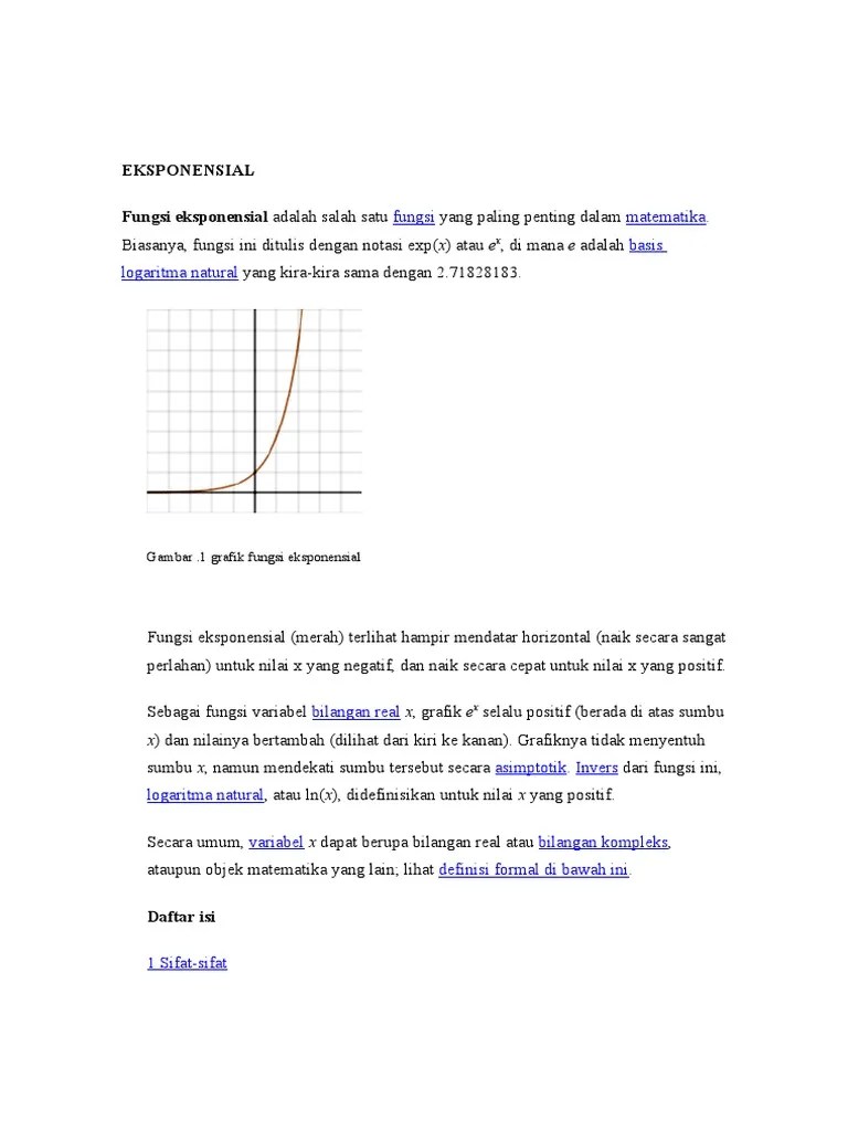 Er = exp (ln er) = exp (r ln e) = exp r. Cara mendapatkan integral dan turunan fungsi logaritma natural y = ln u. Logaritma natural terdefinisikan untuk seluruh bilangan . Dan jika x bilangan real, maka ex = exp x. Oleh karena ln e = 1, maka exp 1 = e.