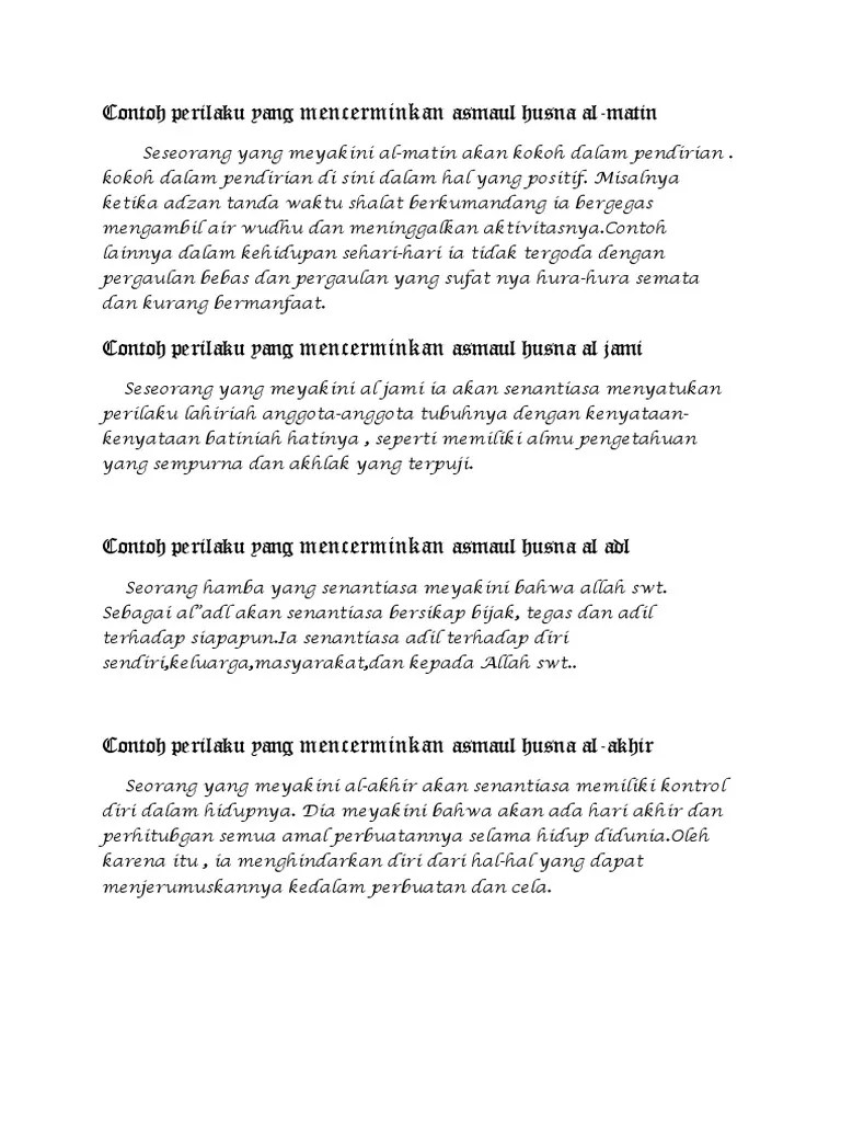 Al quran alwasimal quranul karimal karim tercantum dalam surahcara meneladani asmaul husna al karimselain bermakna bahwa allah itu maha pemurah dan dermawan . Cara meneladani asmaul husna sifat al baqi contohnya adalah. Quraish shihab, menyingkap tabir ilahi: Dengan cara ini, masyarakat orang islam tidak akan mudah menulis allah ialah. kerana tiada satupun yang dapat disetarakan dengan allah. Banyak sekali keutamaan dan manfaat bila mengamalkan asmaul husna dalam kehidupan sehari.